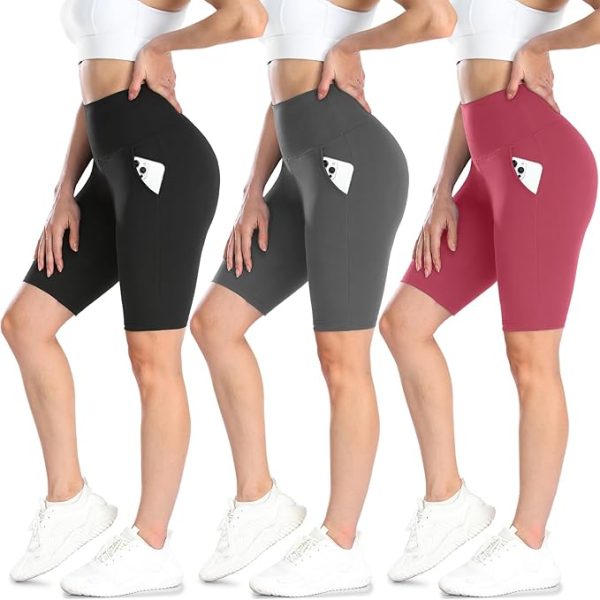 Women’s Biker Shorts with Pockets – 8″ – 3 Pack